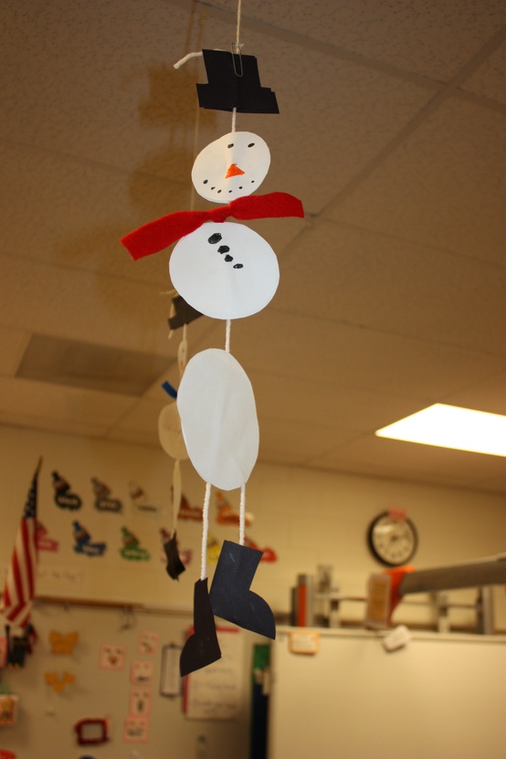 Snowman Mobile - Construction paper, string and crayons are all you need, paper and string in the art closet.